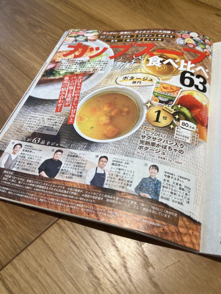 女性セブン(2024年3月7日号)にて、カップスープ食べ比べ特集の審査員をつとめました。https://josei7.com/ -